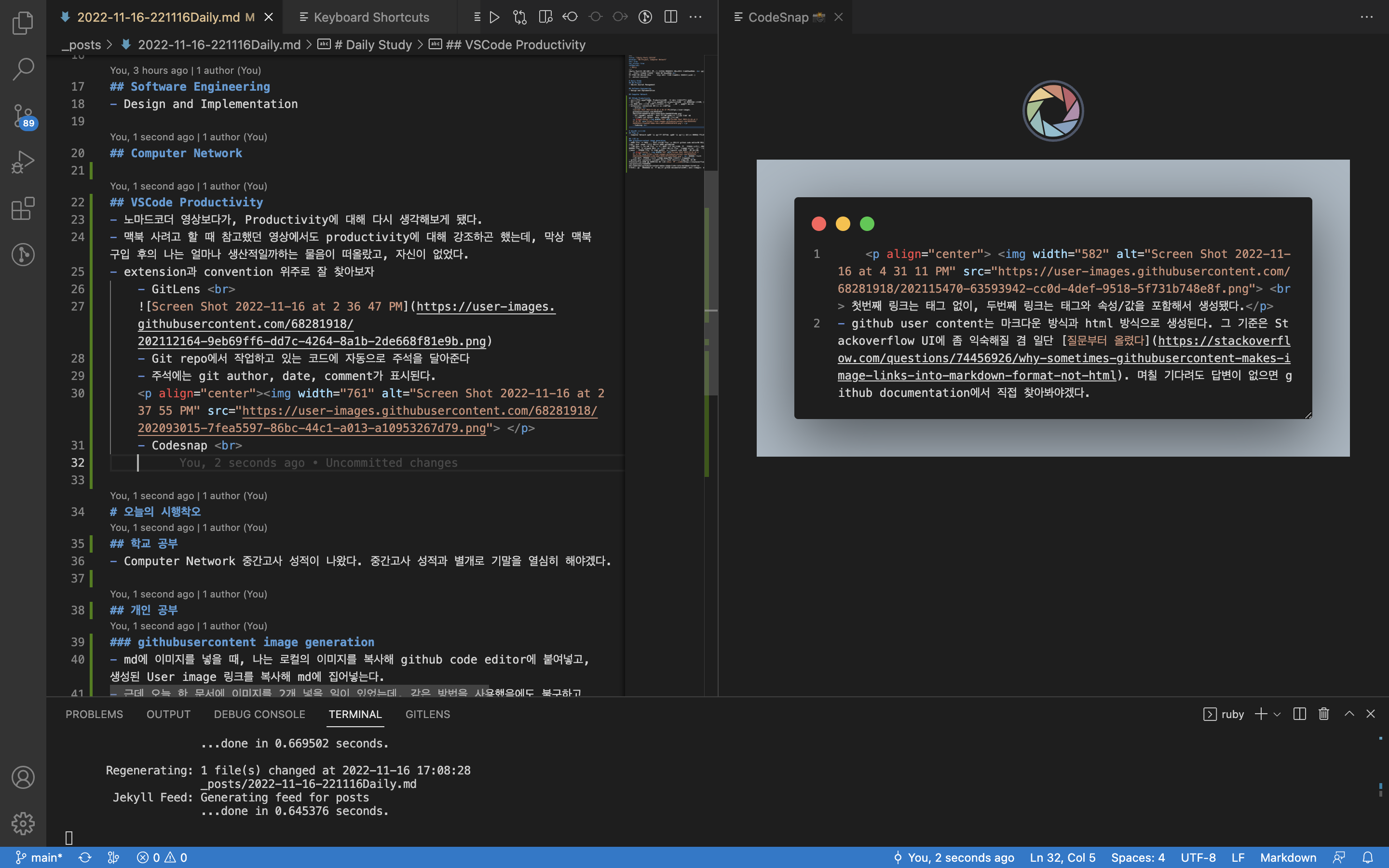 - 몇개 더 알아낸 것들이 있는데, 키바인딩과 유용한 사용법까지 파악하고 나면 하나의 포스트로 정리해도 좋을 것 같다.